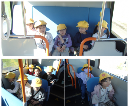 今日は、1年生が心待ちにしていた校外学習の日。とてもよいお天気の中、コミュニティーバスに乗って出発です!