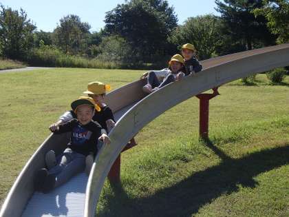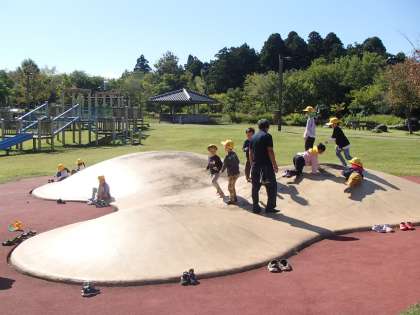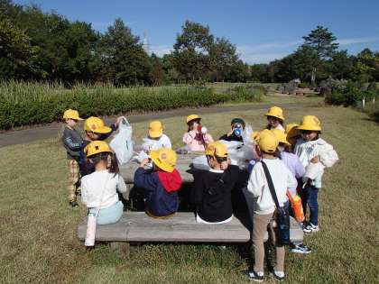 たくさん木の実を拾えて大満足の1年生。最後には、遊具で楽しく遊びました。