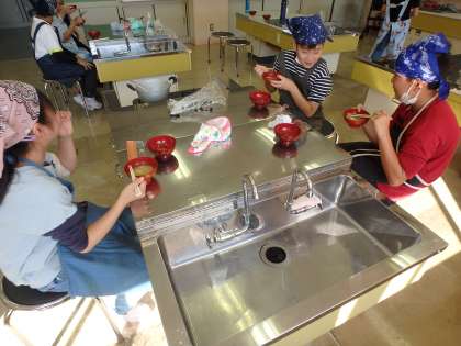 具材のやわらかさは、どの班もばっちりでした。みんなで、おいしくいただきました。