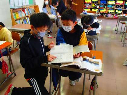 社会科の学習で、台地に水をひくにはどうしたらよいのかを考え、一人一人が予想したことを友達に伝え合いました。