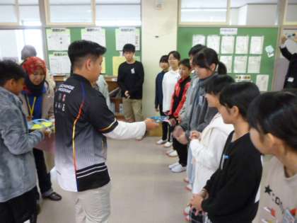 交流会後、一人1台端末の翻訳機能を使ってメッセージを読むことで、日本のことに興味をもってくれていることを知り、とてもうれしそうな様子でした。