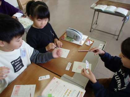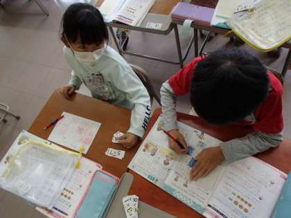 算数の時間に、習った2〜5の段の九九を使って「九九ビンゴ」というゲームを行いました。
