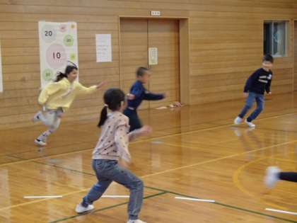 今回は、おにをくじ引きで決める等、今までにない取り組みをゲームの説明担当の子供が考えてくれました。くじを引くときもみんなとても楽しそうでした。