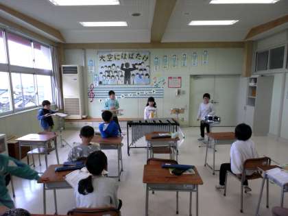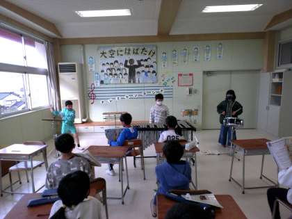 音楽科の学習では、各グループが考えた「まほうの音楽」を発表しました。