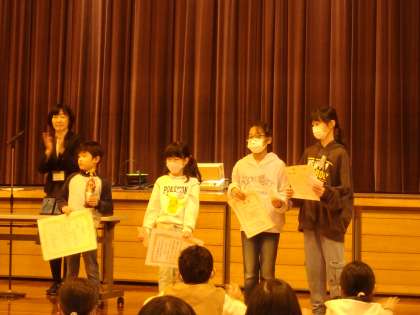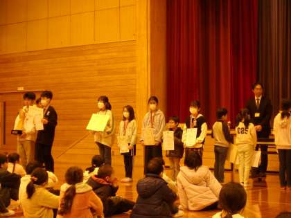 終業式後に授賞式を行いました。たくさんの子供たちが活躍した2学期でした。