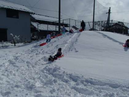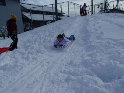 雪だるまを作ったり、そりをしたり、雪に寝そべったりと、みんな自由に楽しんでいました。