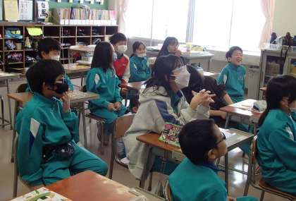 読書タイムに、先生からの読み聞かせがありました。子供たちは、話の展開を予想しながら楽しく聞いていました。