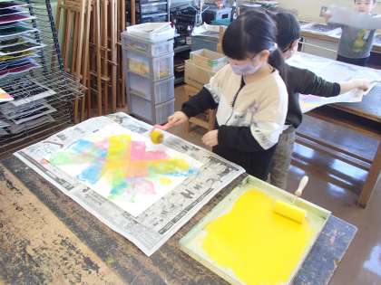 図画工作科では、「ころころローラー版画」の制作を始めました。