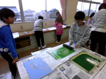 図画工作科では、1月から版画の学習をしています。今日は、いよいよ「刷り」の作業をしました。