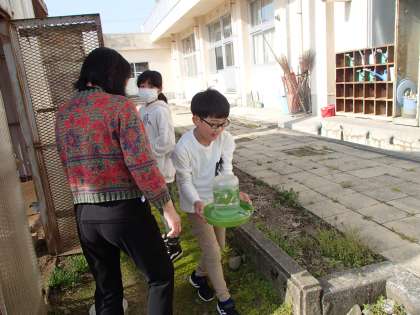 上学年の仲間入りをした4年生。朝から、委員会活動の仕事をがんばっています。