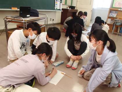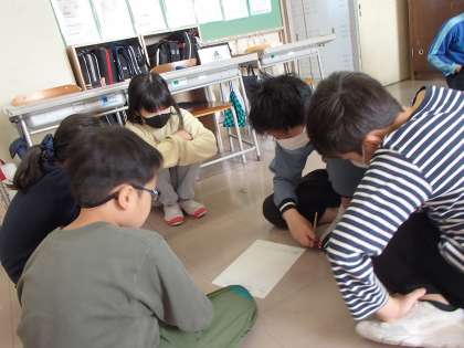 今日は、高学年が集まり、全校遠足に向けて事前の話合いを行いました。どの班もどんな遊びをしたら下級生が喜んでくれるかを一生懸命考えていました。