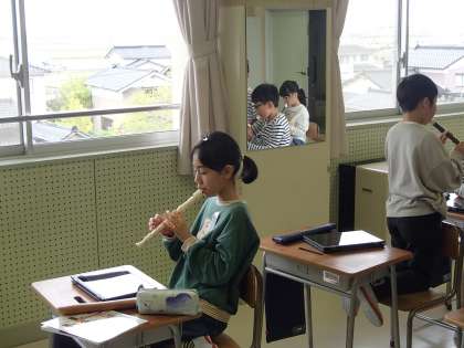 今日の音楽科の学習では、息づかいについて学習しました。自分の音をよく聞いて学習に取り組んでいます。