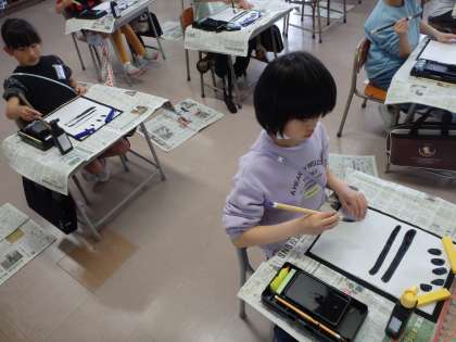 墨が付いた道具の片付けも初めてでしたが、最後までしっかりと行うことができました。