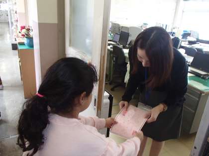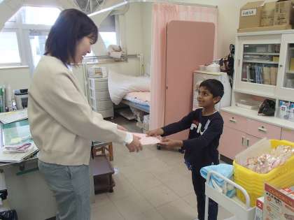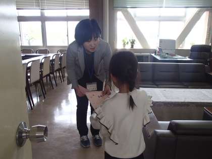 今日は国語科の学習で作っていた自己紹介名刺を、自分で選んだ先生方、職員の方々に渡しに行きました。最初は緊張してなかなか言葉が出ないこともありましたが、喜んでもらえると笑顔も見られました。第二弾も予定しています。今日の経験を次に繋げて、自信をもって渡そうとはりきっている子供たちです。