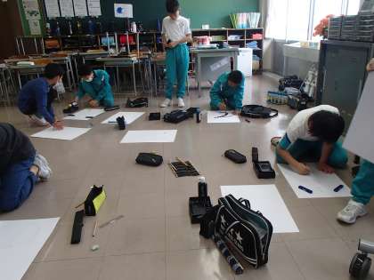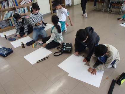 6年生は、来週の運動会に向け様々なことを頑張っています。今日は、体育館に掲示する運動会スローガンを画用紙に大きな字で書きました。