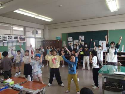 休み時間になると、教室ではダンスパーティーが始まります。運動会の競技で踊るダンスを、低学年だけではなく、たくさんの学年の子供たちが集まって踊っています。運動会当日は、すてきなダンスと迫力ある競技をお楽しみください。