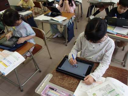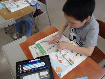 消しゴムや指を使って長さを比べました。自分の予想は合っているのか、定規を使って調べたり、センチメートルの書き方を確認したりしました。