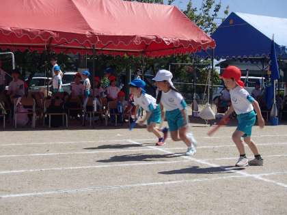 リレーや玉入れでは、団の友達と力を合わせてがんばっていました。並ぶときには、1年生にも優しく声をかけてあげる姿が立派でした。