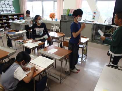 来週の宿泊学習に向けて、係の打ち合わせを行いました。班長は、入所式や退所式の司会や児童代表の言葉の準備をしました。保健係は、健康観察の仕方やシーツを取りに行く方法を確認しました。