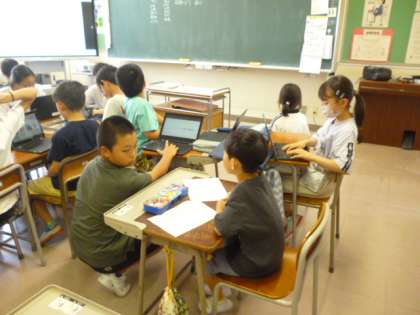 今日は、第1回フレンドリー学習を行いました。興味の共通した仲間で集まり、どのようなことを追究していくか話し合って、学習課題を立てました。自分のやりたいことを、しっかりとグループの仲間に伝えていました。