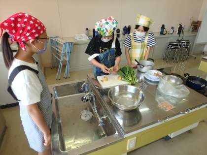 調理実習【ほうれん草のおひたし、ゆでいも】(5年生)