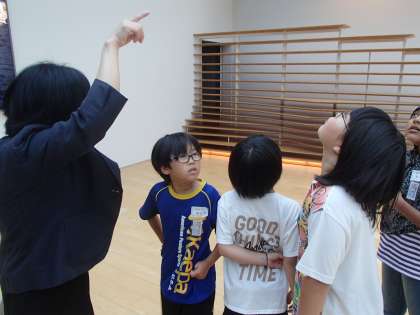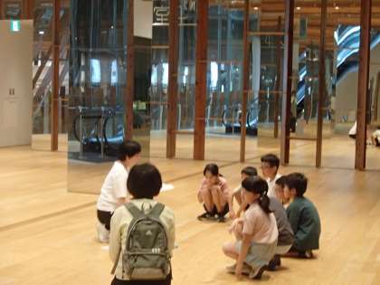 校外学習で、ガラス美術館へ行きました。スタッフの方に、館内に展示してある作品を紹介していただき、ガラスの美しさに見とれていました。
