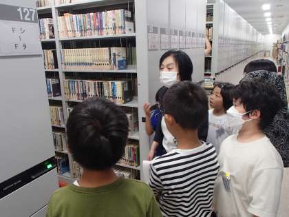 校外学習で、富山市立図書館の利用についても教えていただきました。たくさんの本があることを知り、子供たちは驚いていました。