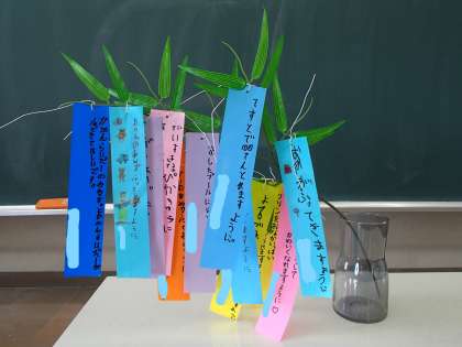 7月になったので、七夕の短冊を書きました。子供たちの願い事は、ユニークでとても面白いです。金曜日に持ち帰るので、おうちでも飾ってみてください。