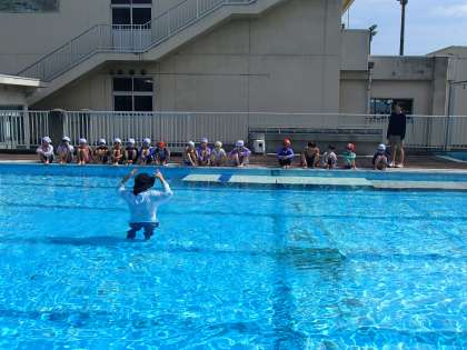 今日、初めてのプールに入りました。学校で一番最初にプールに入るということで、子供たちはわくわくどきどきしていました。プールはとても気持ちよく、うれしそうな声が響いていました。入水の約束を守って、楽しいプール学習にしましょうね。