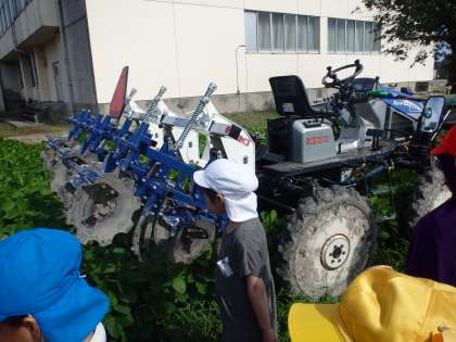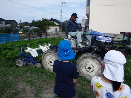 先日地域の方が、雑草取りと土を高く盛る作業を機械で手伝ってくださいました。子供たちが時間をかけて行っていた作業があっという間に終わり、みんなとても驚いていました。
