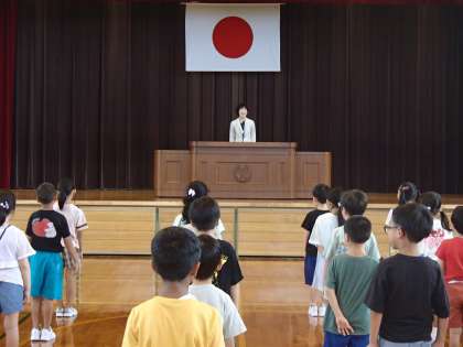 また始業式での子供たちは、2学期の始まりを感じ、落ち着いた態度で校長先生の話に真剣に耳を傾けていました。子供たちの様子から、2学期もがんばろうという強い気持ちが感じられました。