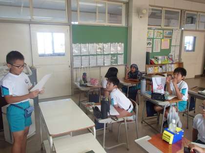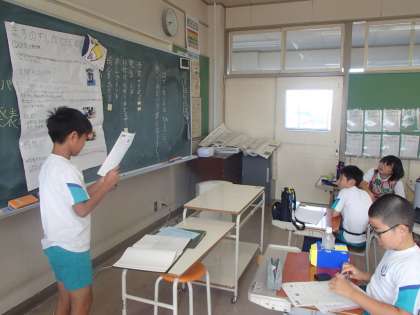 自由研究の発表会をしました。仲間ががんばってきた研究発表に、興味津々な子供たち。真剣に話を聞きながら、自分が感じたこと伝えていました。
