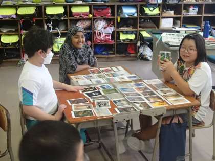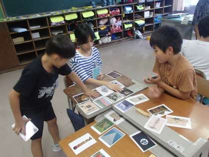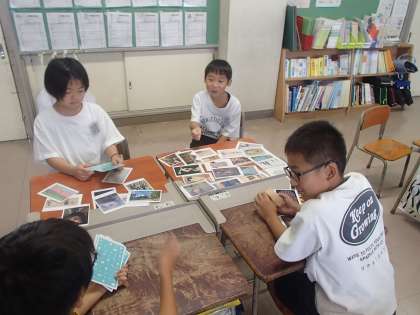 図画工作科の時間には、有名な作品が描かれているアートカードを使いながら、作品の気持ちを想像したり題名を予想したりするなど、想像力を働かせて考えました。