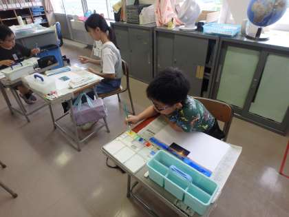 今日の図画工作科では、自分で写真を選び、その写真から広げた想像に合う形や色など表し方を工夫しました。どの子も、「まだ見ぬ世界」を考えて作品に表していました。