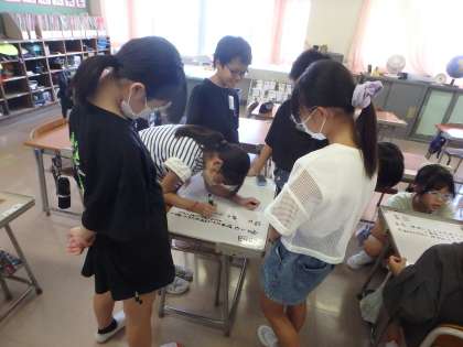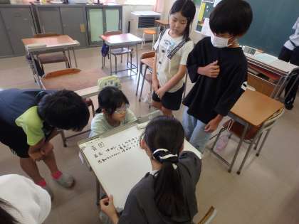 学習発表会のスローガンに入れたい言葉を話し合いました(5年生)
