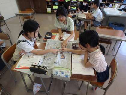 新聞には、「見出し」「コラム」などがあることや、ページの代わりに面という言葉を使うこと等を学習しました。