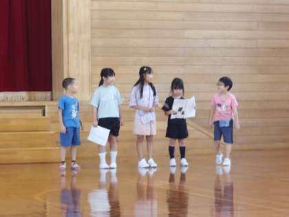 学習発表会で行う劇の配役が決まり、体育館での練習が始まっています。今日はせりふの練習をしました。見ている人に伝わるように、はきはきと大きな声で言えるように練習しています。