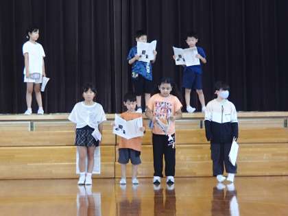 学習発表会で行う劇の配役が決まり、体育館での練習が始まっています。今日はせりふの練習をしました。見ている人に伝わるように、はきはきと大きな声で言えるように練習しています。