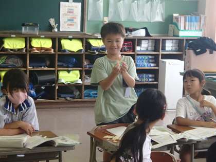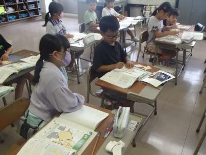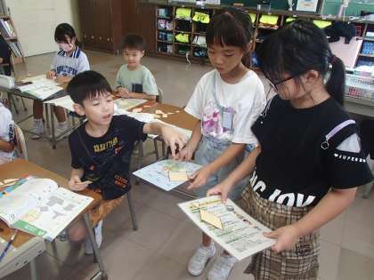 形を組み合わせたり、仲間分けをしたりしました。子供たちは、パズルをしながら、同じ三角形でも大きさや形が違うことに気付いていました。