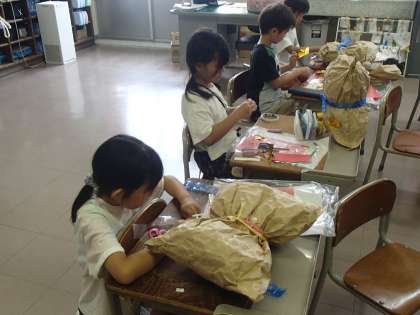 図工 くしゃくしゃぎゅっ(2年生)