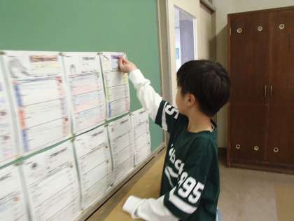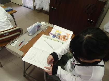 今まで学習した正方形や長方形、直角三角形を身の回りから見付ける学習をしました。「教室で一番多い形は何だろう」「教室の中で一番大きい長方形は何かな」と一人一人が問いをもち、それを解決しようと教室中を調べました。ものさしがいくつ分あるかで長さを調べたり、三角定規で直角かどうかを調べたりしました。そして、見付けたものや数をノートに自分なりにまとめていました。