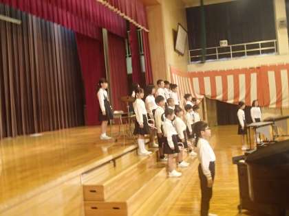 今日は校内発表会でした。ふるさと寒江に対する思いや願いを、合奏や合唱に乗せて寒江っ子へ届けました。