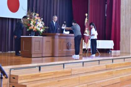 実行委員長からは、子供たちに、記念のクリアファイル、紅白饅頭を贈呈しました。