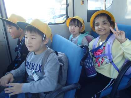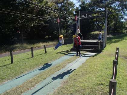 今日は、北代緑地公園へ秋見つけに行きました。初めての校外学習でドキドキの子供たちでしたが、天候にも恵まれ、みんなでコミュニティバスに乗って行きました。しっかり挨拶をしたり、乗車マナーを守ったりして、目当てを守る姿がとても素敵でした。公園では、たくさんのいろんな形のどんぐりを発見し、「どんぐり王国だ!」と喜んで拾っていました。秋みつけのあとは、思い切り遊具で遊びました。