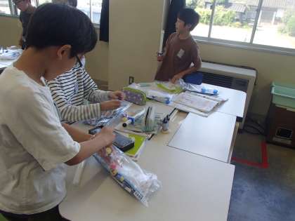 理科「とじこめた空気と水」の学習では、空気鉄砲で遠くにスポンジを飛ばすためにはどうすればよいか、実験を通して考えました。