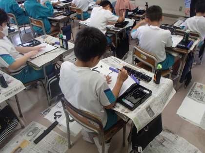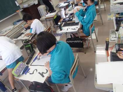 折れに気を付けながら「らん」という字に取り組んでいます。一画一画集中しています。
