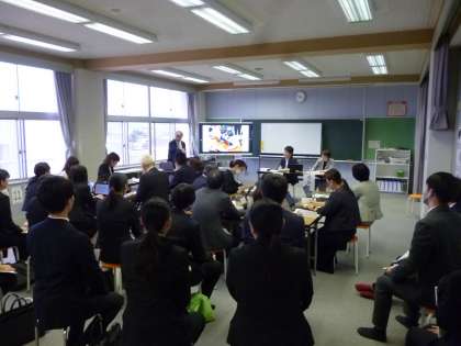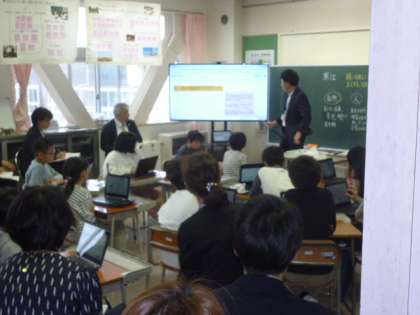 富山国際大学 子ども育成学部の先生を講師としてお招きし、4年生の教室で公開授業研修会を行いました。他校の教員の方や来年度から教員として働く学生の皆さんが多く参加されました。4年生の総合的な学習で行っている「ふるさと寒江」をテーマにした授業づくりについて先生方で協議し合い、指導助言をしていただきました。
