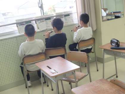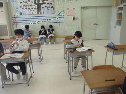 学習発表会も無事に終え、音楽科の学習では旋律の特徴について学習を進めています。今日は、弾んだ元気な感じを表すために、スタッカートの練習をしました。
