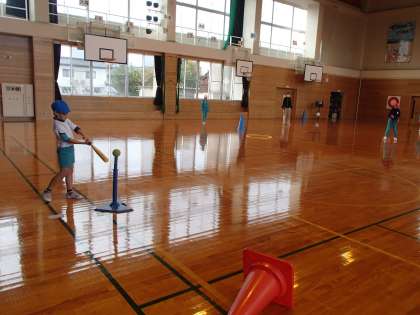 体育科では、ティーボールに取り組んでいます。アドバイスをしたり教え合ったりする関わりがとても素敵です。