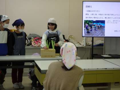 5年生が米作りで学んだことを発表し、保護者の方や地域の方に聞いていただきました。
